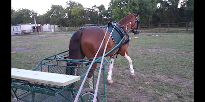 Most trainers here in Houston are focused on one discipline or another. A lot of them offer their services for Western horses with a strong background for rodeo events- roping, barrel racing, but there are also a lot of cutting horses and working cow as well as reining. There are also a fair share of hunter/jumper and dressage barns in the area and fewer still- trainers that offer driving. Throw in a handful of breed specific barns and you can see why it's a luck of the draw that I could have found someone that can easily adapt to the discipline that best suits the horse.